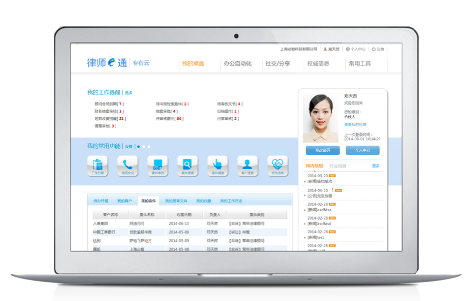 为15家典型客户定制开发律师事务所信息化解决方案产品,如:上海段和段律师事务所,大成律师事务所等